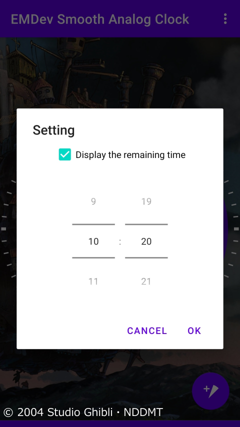 This is an analog clock for Android The long hand, short hand, and second hand move smoothly. You can display the remaining time.